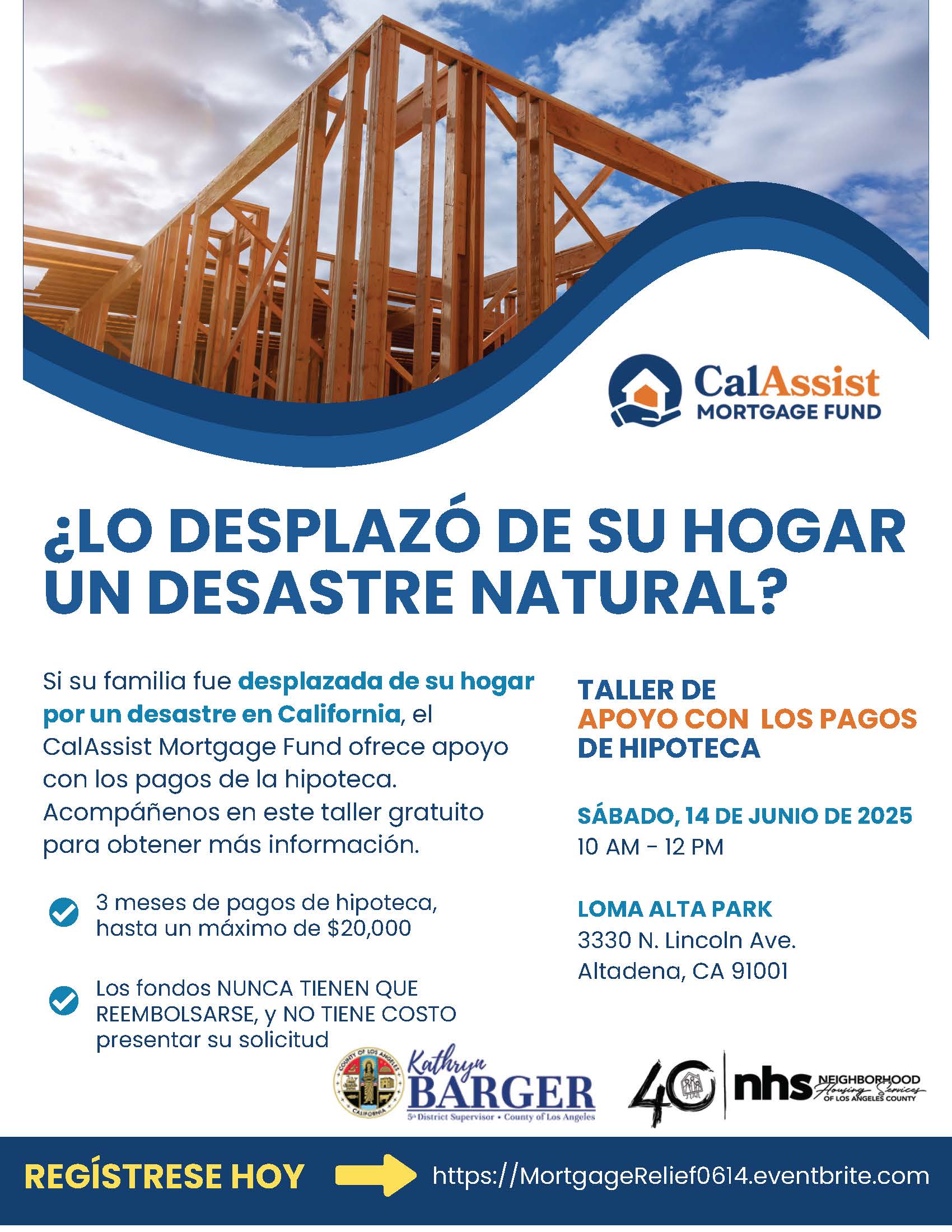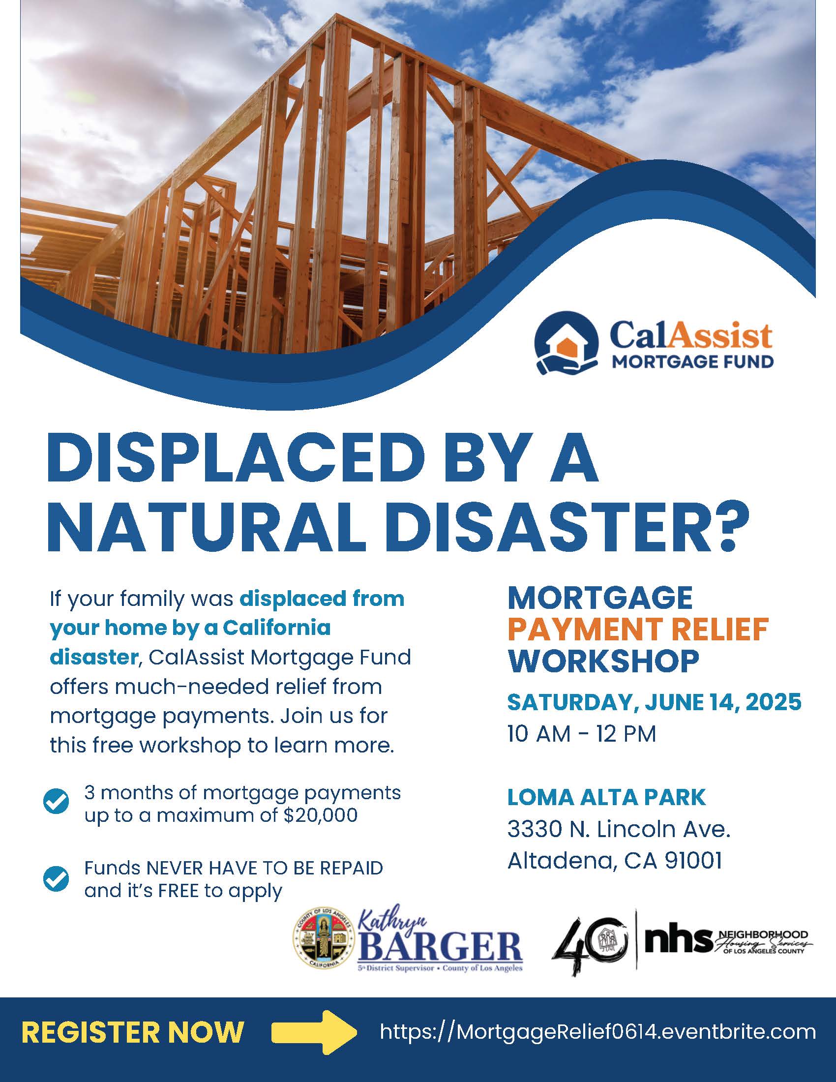 If your family was displaced from your home by a California disaster, CalAssist Mortgage Fund offers much-needed relief from mortgage payments. Join us for this free workshop to learn more. 3 months of mortgage payments up to a maximum of $20,000/Funds NEVER HAVE TO BE REPAID and it’s FREE to apply. Register today.