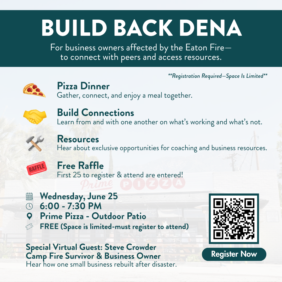 A weekly digital magazine bringing you everything you need to know in Dena—all in one place. Designed especially for Eaton Fire survivors, The Dena Report gathers updates, highlights local heroes, and keeps you informed about important happenings across the community.
