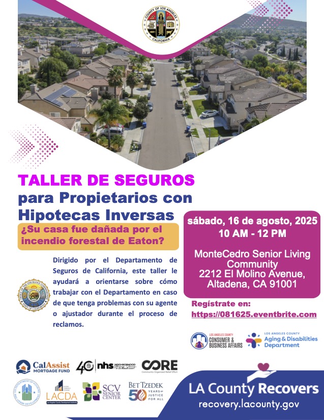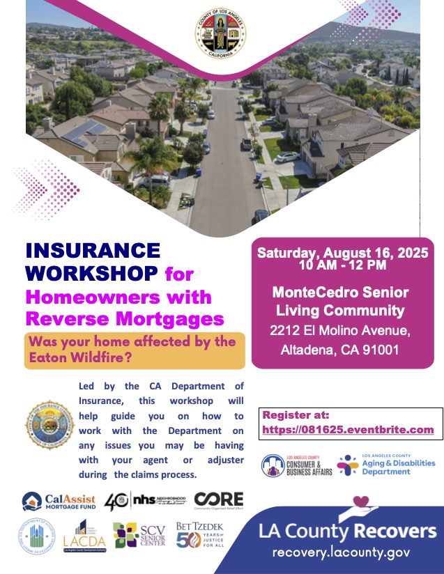 For Eaton Fire residents, NHS team members will be on site at the Altadena Main Library (600 E. Mariposa) Tuesdays and Thursdays from 10am-6pm to assist residents who want help with their application for the state mortgage program that provides grants up to $20,000 (3 months of mortgage payments) for disaster survivors. WALK-INS are welcome.