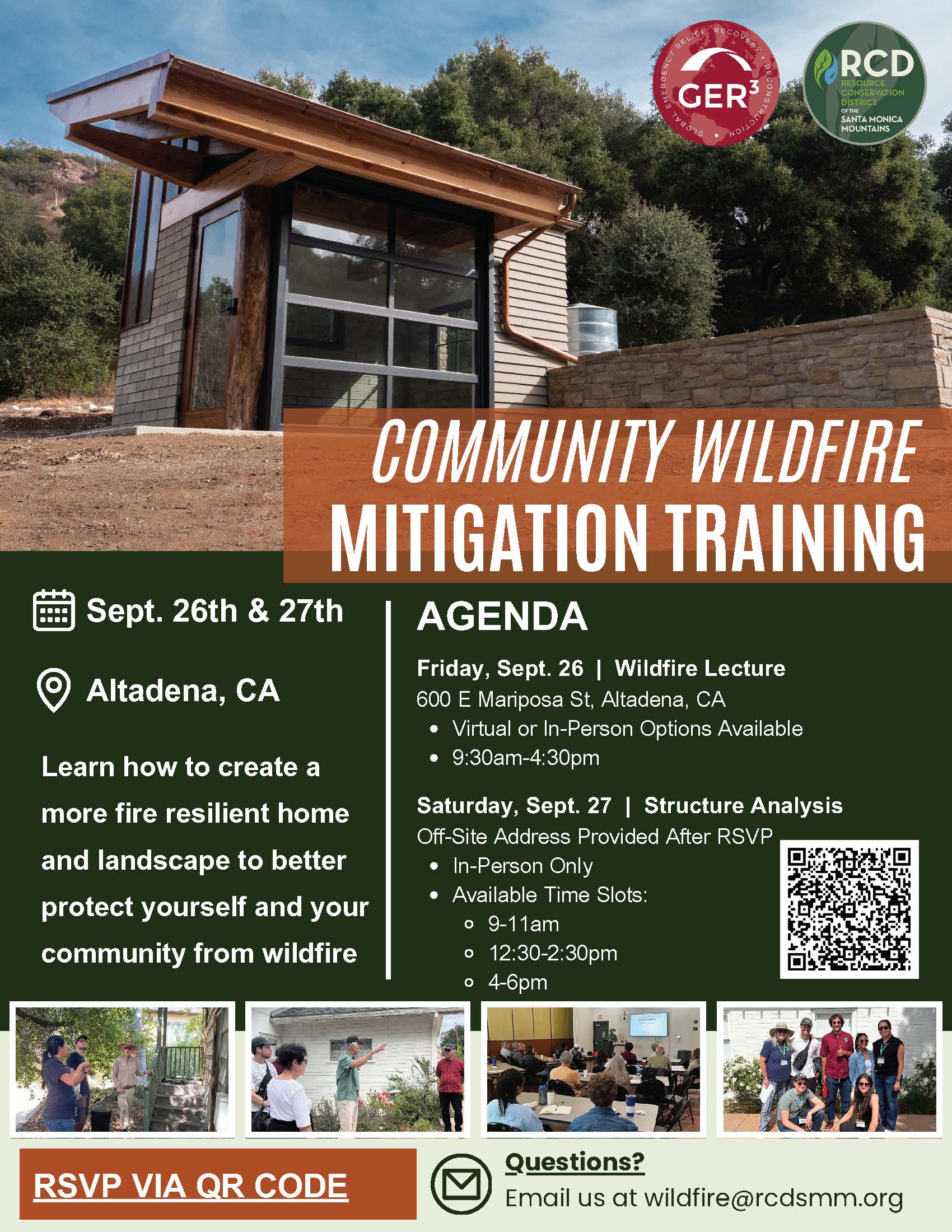 Community Wildfire Mitigation Training Wildfire Lecture Friday, Sept. 26 • 9:30am-4:30pm, Altadena Main Library