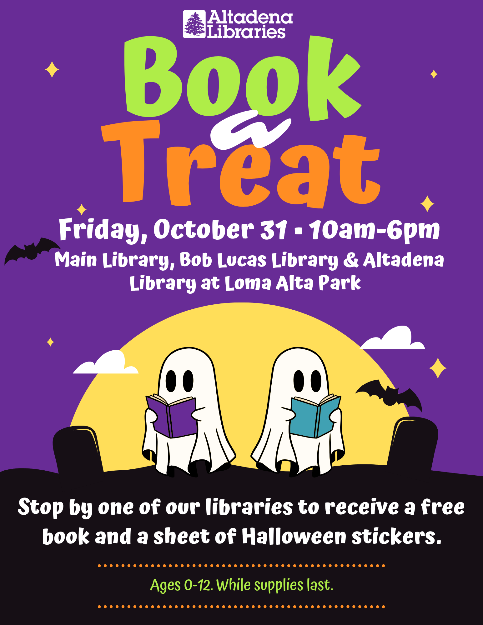 Altadena Library Book a Treat: Free book for children ages 0-12 (while supplies last)