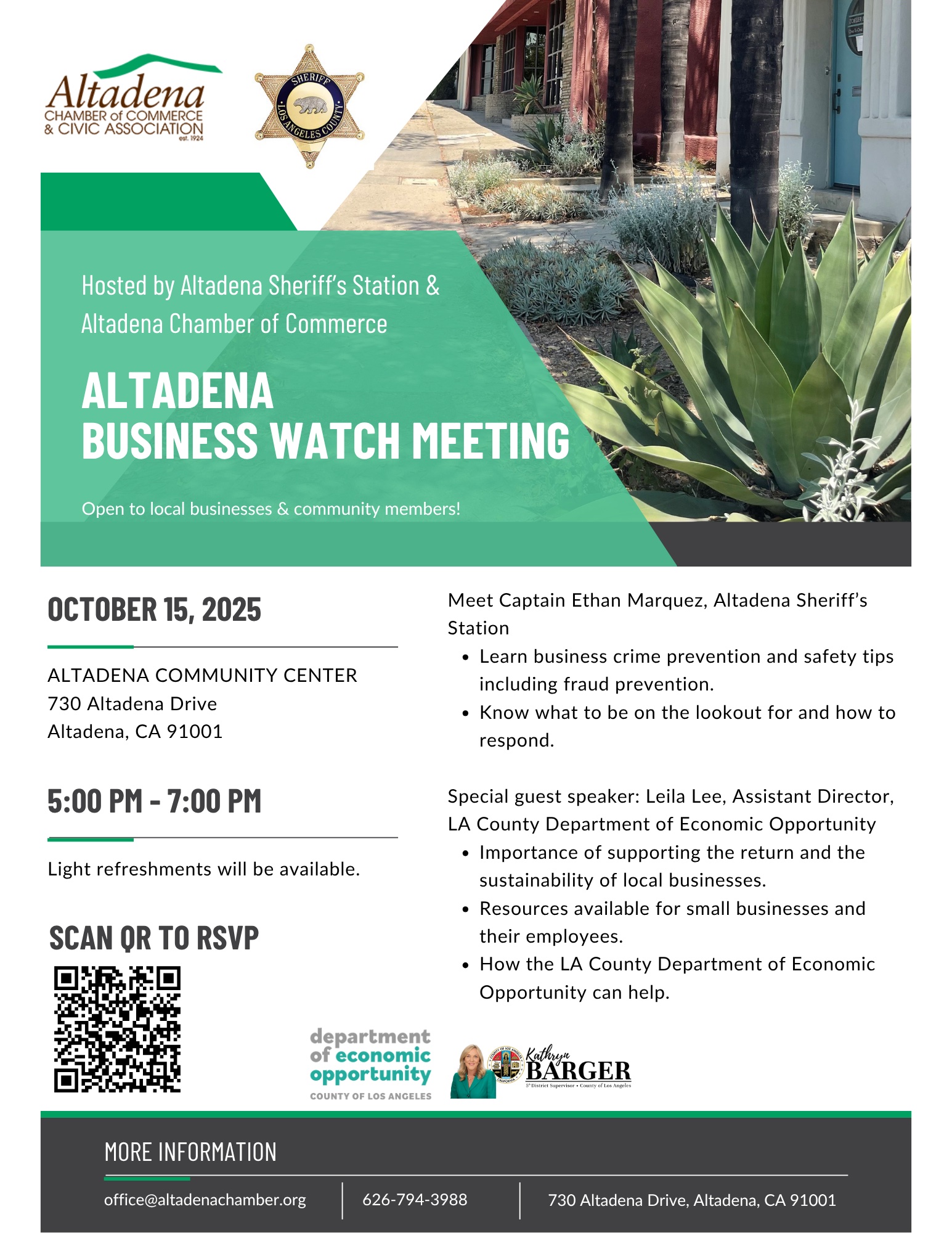 Wednesday, Oct. 15 • 5-7pm Altladena Community Center, 730 Altadena Dr.