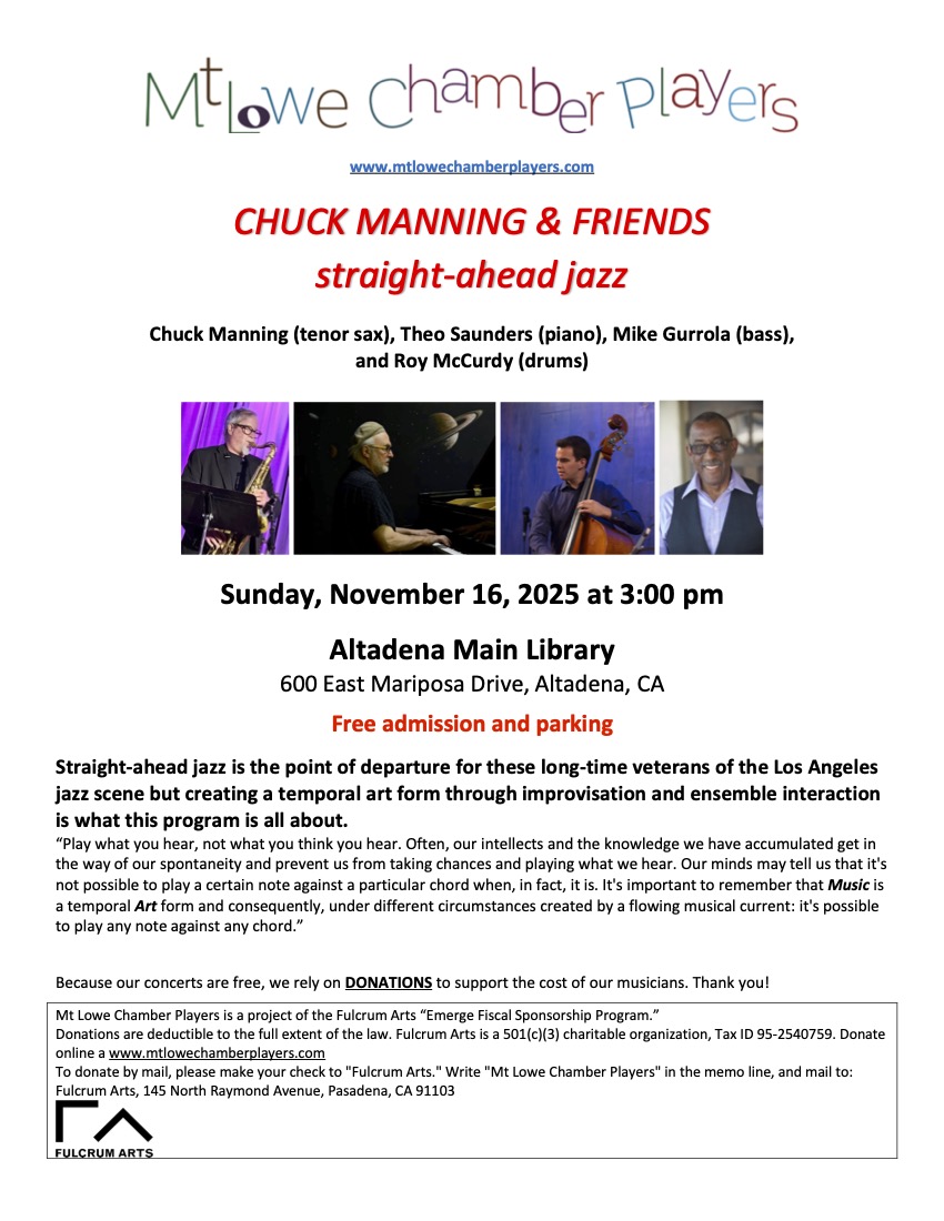 Sunday, Nov. 16 • 3pm Altadena Main Library, 600 E Mariposa