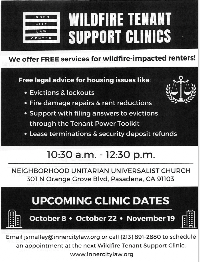 We offer FREE services for wildfire-impacted renters! Email jsmalley@innercitylaw.org or call 213-891-2880 to schedule an appointment.