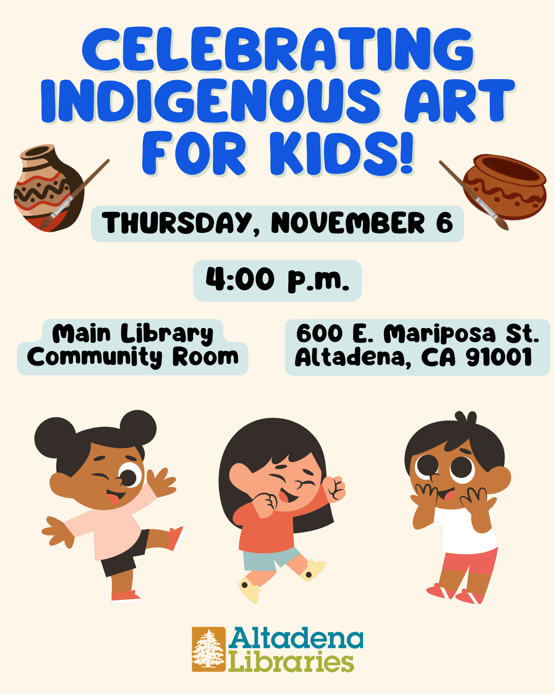 Family Storytime at Main!, First Saturday each month, 3:00-4:00 p.m., Main Library Community Room or Children's Area