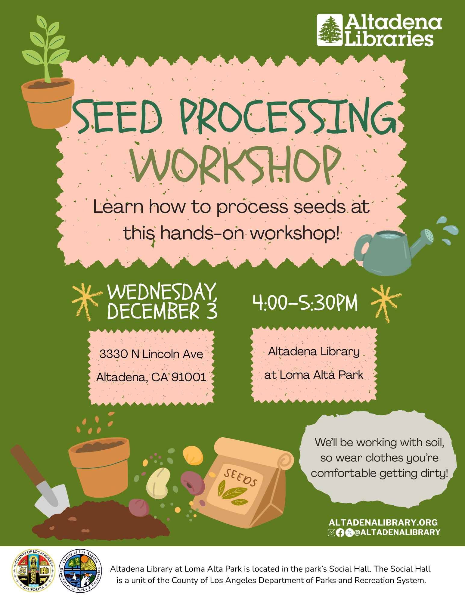 This workshop will also provide an in-person opportunity to upload your recipe to the Altadena Cooks website as well as receiving free cookware, supplies are limited.