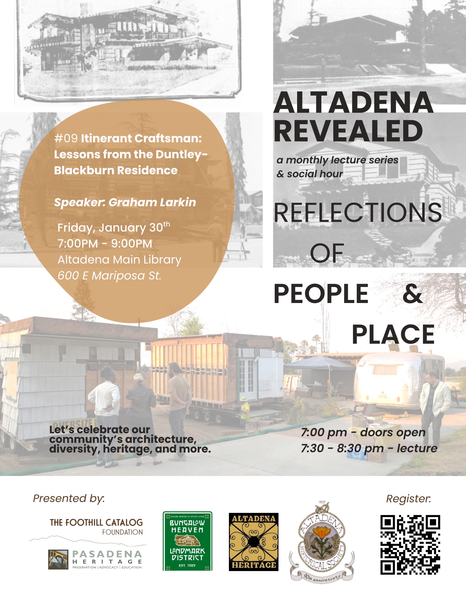 Altadena Revealed Lecture Series - Itinerant Craftsman: Lessons from the Duntley-Blackburn Residence Friday, Jan. 30 • 7-8:30pm Altadena Main Library, 600 E Mariposa