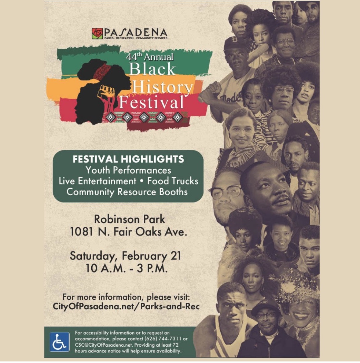 Pasadena Black History Festival Saturday, Feb. 21 • 10am-3pm Robinson Park, 1081 N. Fair Oaks Ave