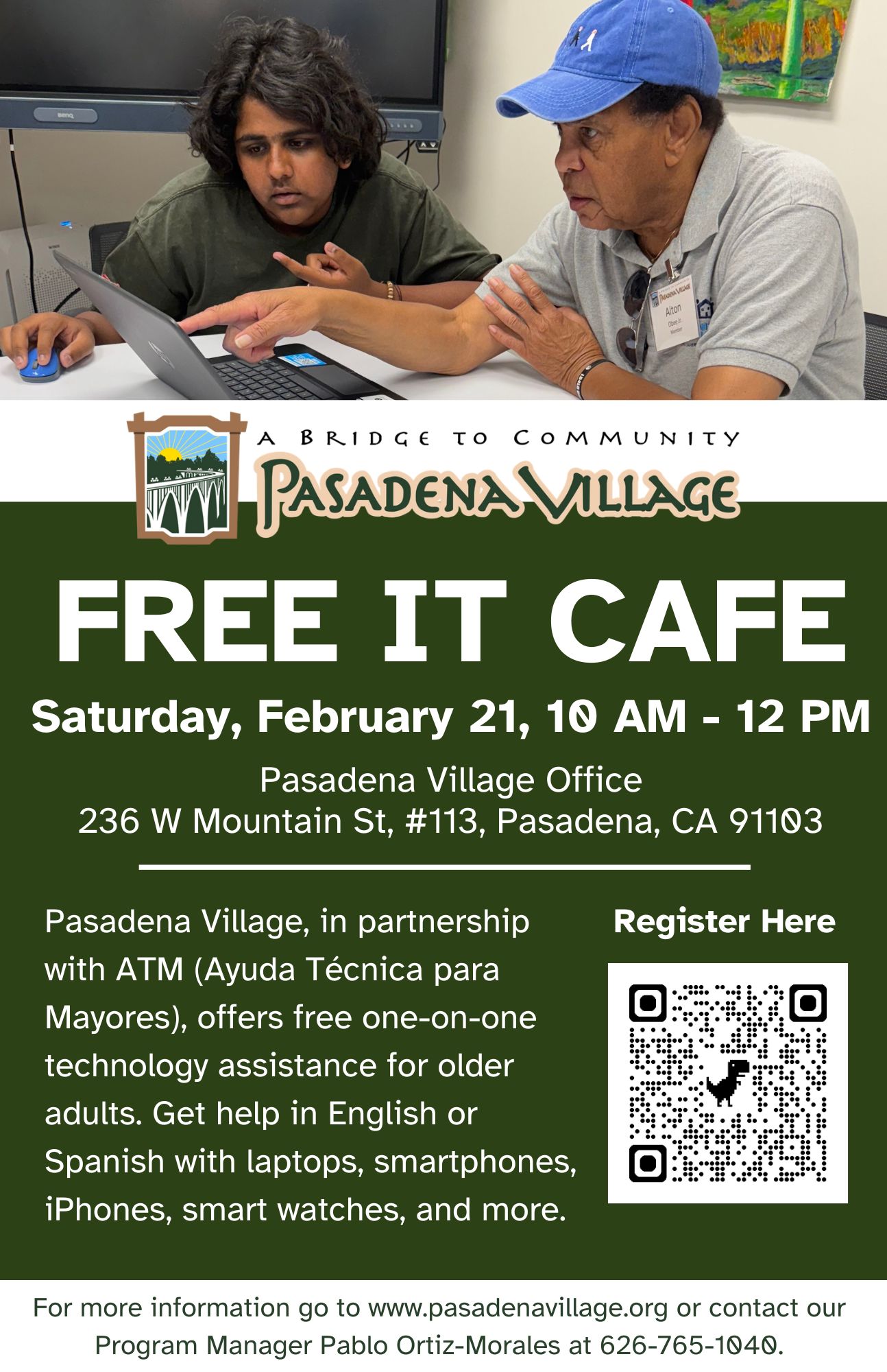 Pasadena Village: Free IT Cafe Saturday, 2/21 • 10am to 12pm Pasadena Village, 236 W Mountain St #113, Pasadena, CA 91103
