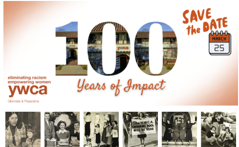 Save the date for YWCA of Glendale & Pasadena’s Centennial Reception. Join us for light refreshments and an afternoon of stories, reflection, and connection as we celebrate 100 years and look ahead to the next 100. Admission is free for all guests. Parking is available behind the building; entrance from Geneva street. Reception site.
