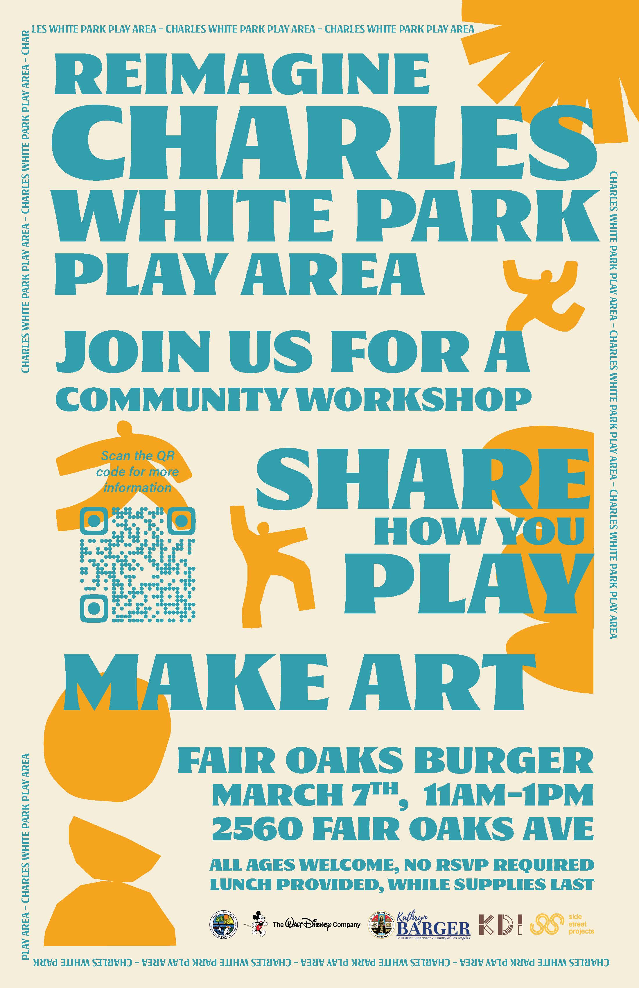 Reimagine Charles White Park Play Area Community Workshop Saturday, March 7 • 11am-1pm Fair Oaks Burger, 2560 Fair Oaks Ave