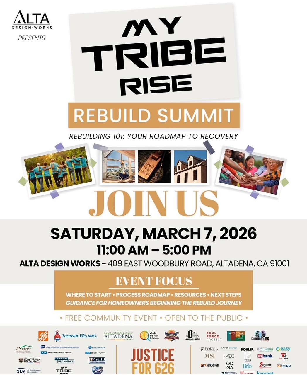 My Tribe Rise Rebuild Summit: Rebuilding 101 Your Roadmap to Recovery Saturday, March 7 • 11am-5pm Alta Design Works, 409 E Woodbury Rd.