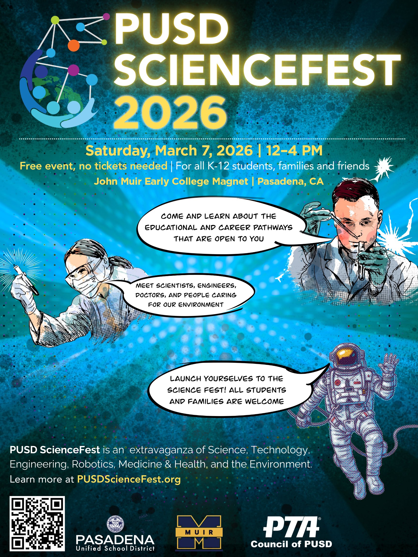 PUSD ScienceFest 2026 Saturday, March 7 • 12-4pm John Muis Early College Magnet, Pasadena