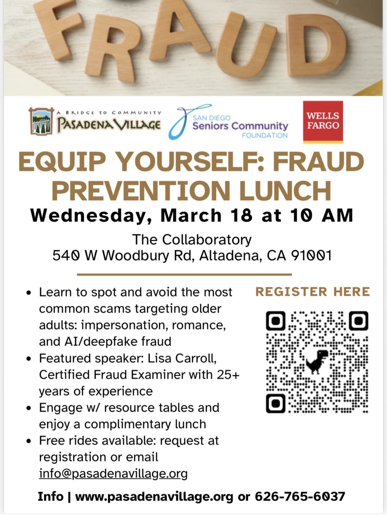 Pasadena Village:Equip Youself, Fraud Prevention Lunch