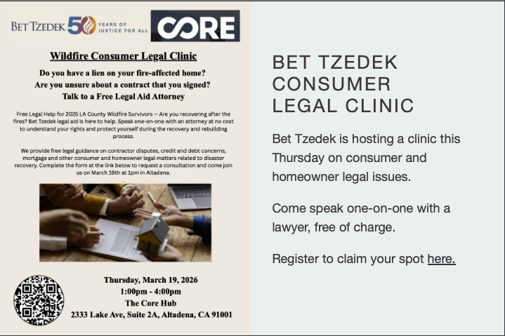 On March 20, 2026, at 10 am the California State Assembly Banking and Finance Committee will be holding an informational outcomes hearing at Pasadena City College. Community turn out and public testimony at this hearing will be critical to advancing AB 1847 and to improving access to mortgage forbearance for survivors.